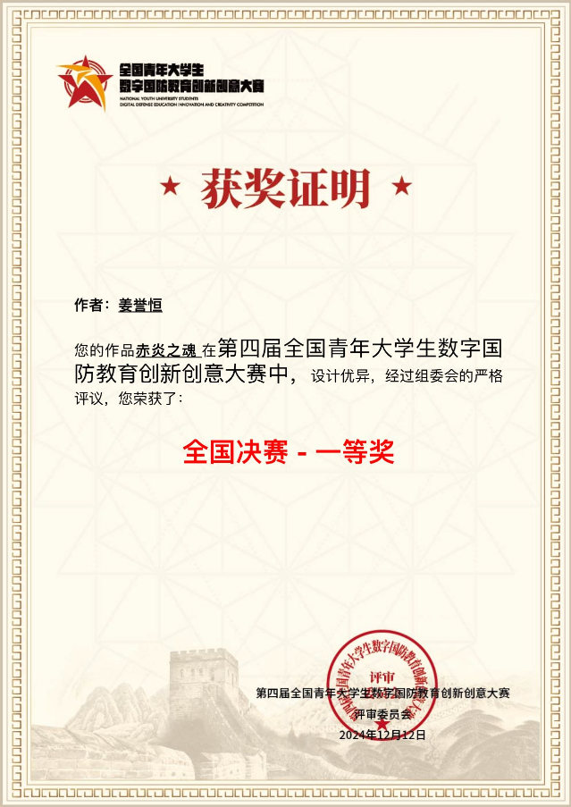 近日,第四届全国青年大学生数字国防教育创新创意大赛在北京圆满落幕。永利信息工程系视觉传达设计专业学生姜誉恒等12人荣获国赛等级奖,29人荣获省赛等级奖。本届全国青年大学生数字国防教育创新创意大赛,由国家一级协会中国信息协会主办,中国信息协会经济与国防协调发展专业委员会承办,旨在深化全民数字国防教育,推动全民国防教育的创新发展。此次大赛吸引了众多高校参与,永利作为参赛单位之一,从筹备到组建参赛队伍,...