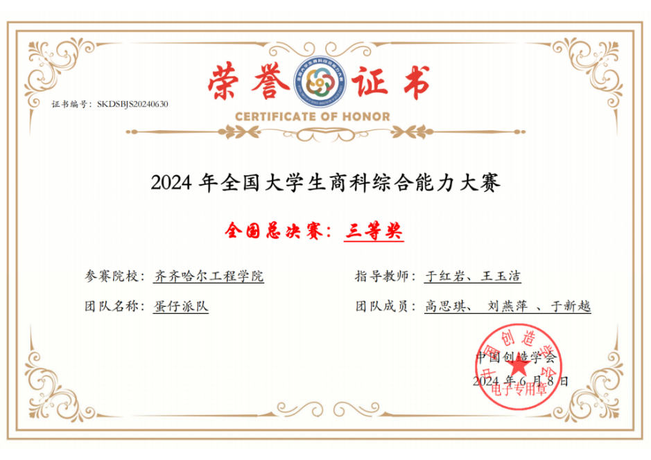 近日,2024年全国大学生商科综合能力大赛正式落幕。永利管理工程系互联网金融专业两组学生团队获得了国赛“三等奖”的好成绩。全国大学生商科综合能力大赛由中国创造学会主办,中南大学商学院、上海策鸿信息科技有限公司、中国创造学会青年工作委员会协办,旨在促进各高校商科教学的改革与发展,进一步提升各院校的商科教学水平和新商科人才培养质量,提高同学创新、创业、创造能力,为高校毕业生成长、成才,成功就业提供帮助...