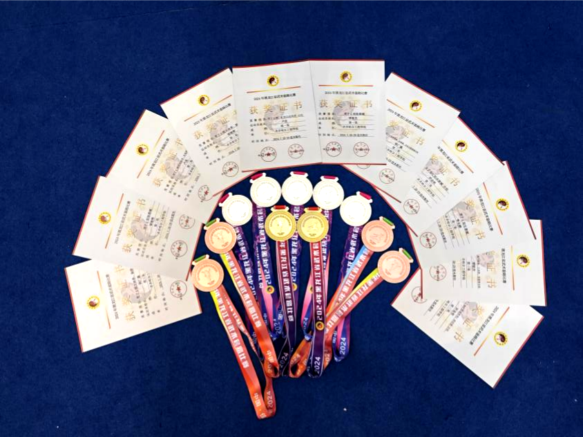 7 月 29 日,为期三天的 2024 年黑龙江省武术套路比赛在佳木斯文体会展中心落下帷幕。学校基础部体育教师韩淑梅带领学校武术队六名队员参加比赛,并荣获两金、五银、四铜的好成绩。此次比赛涵盖规定拳术、传统拳术、传统器械、太极拳、自选拳术、自选器械、对练以及集体项目。来自全省 13 个地市、北大荒农垦集团及龙江森工集团的 68 支代表队,800余名运动员参加。接到比赛通知后,基础部与武术队队员所在专业及时沟通,调整...
