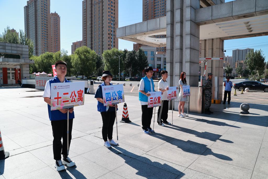 新生和家长在学长志愿者的引导下有序入校,报到、填表、领取物品……各项流程有条不紊地进行,青春的朝气、美好的憧憬,溢满整个校园。