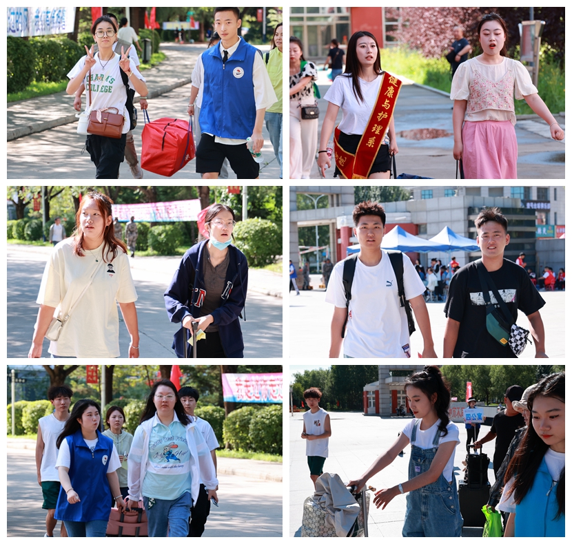 学校成立校内接待组、校外接站组等8个工作组,分别在齐齐哈尔火车站、火车南站、飞机场迎接新生,同时安排大巴车,从早8点开始,循环往返于学校和车站、机场,保证将新生安全送达学校。