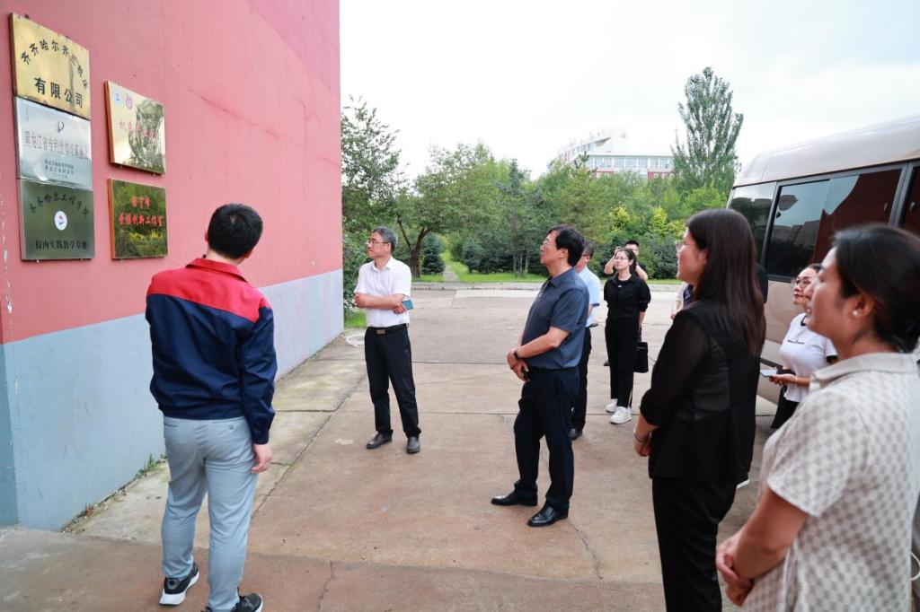 在白雪、陈景鑫的陪同下,考察团一行在校内走访了齐三机床、机械与电气工程实验中心、头雁工作室等产教融合实践场所,并观赏了校园美景。
