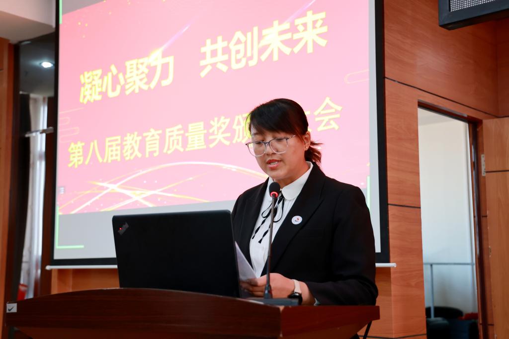10月7日下午,学校召开第八届教育质量奖颁奖大会,理事长曹勇安、院长曹然彬、党委书记郭伟东、党委副书记张振笋、副院长白雪、副院长张静、院长助理陈景鑫出席会议,全面质量管理办公室主任孟艳辉主持,全体教职工线上、线下参会。