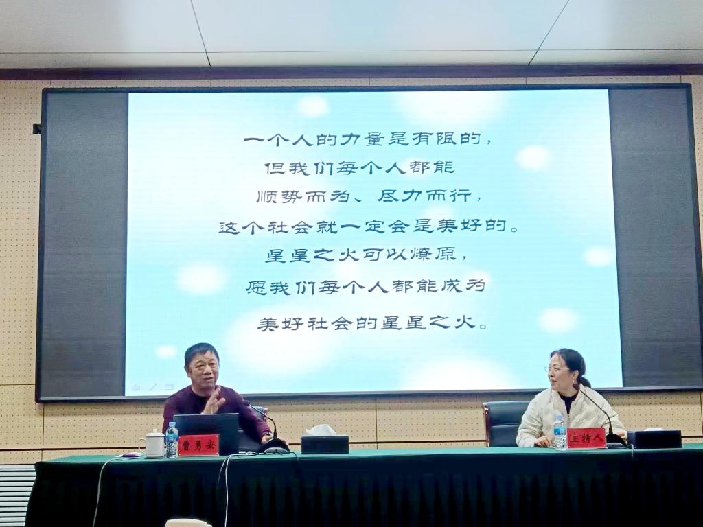 11月7日下午,理事长曹勇安在黑龙江省社会主义学院为参加全省职业教育界和民办教育界代表人士培训班全体学员做《我与中华职教社》专题讲座。