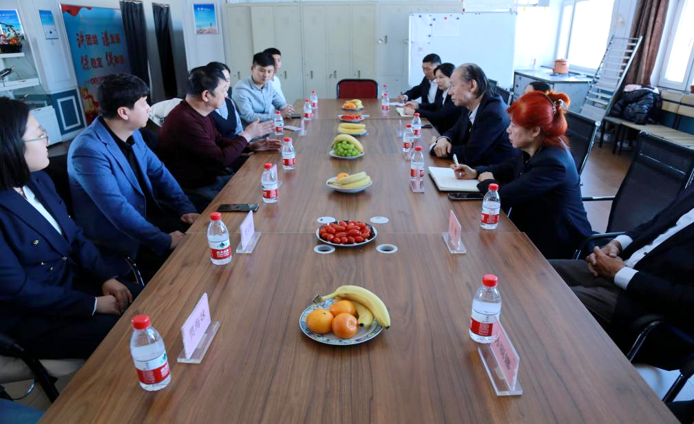 在会议室,周理事长向大家介绍了哈尔滨城市学院的情况,以及护理专业概况及用人需求、电子商务专业发展及用人需求等情况。