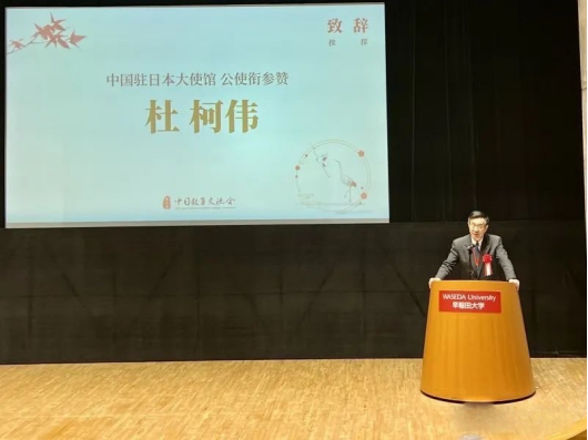 中国驻日本大使馆公使衔参赞杜柯伟在开幕式上致辞