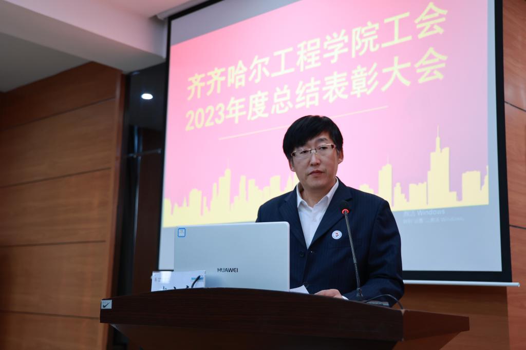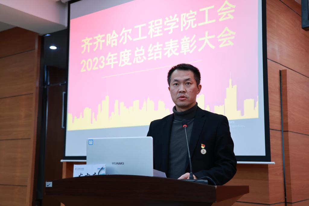 郭伟东在讲话中指出,2023年,学校工会围绕学校中心工作,强化思想政治引领,组织教职工建功立业,关心教职工福祉,坚持全心全意为教职工服务,为助力学校高质量发展起到了凝心聚力的重要作用。他要求,学校工会要不断加强自身建设,认真履行工会四大职能,全心全意为教职工服务,加强民主管理,切实维护教职工权益,开展丰富多彩的文化体育活动,架好教职工与学校沟通桥梁,积极开创工会工作新局面。他希望,全体会员以主人翁的责任感、以顾全大局的全局观、以勇于创新的进取精神、以精益求精的工作态度,全力投入学校建设,为学校高质量发展献计献策,在创建百年老校的新征程上再创佳绩、再立新功、再谱新篇。