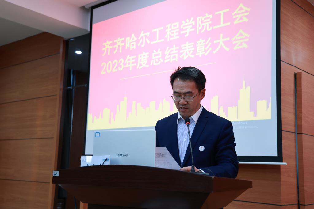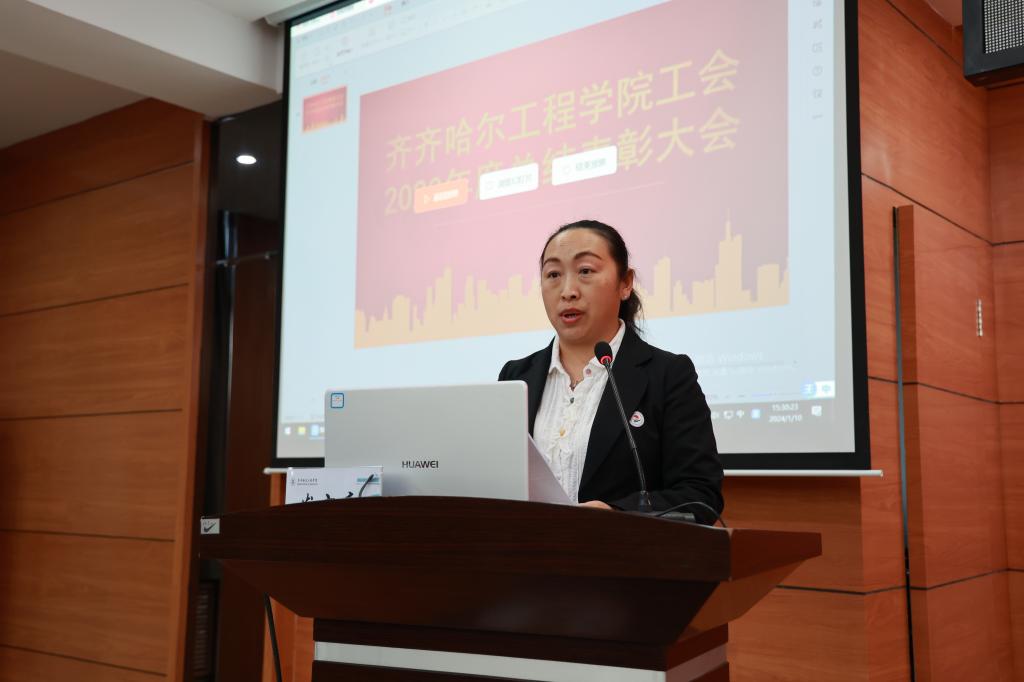 学校工会委员郑洪波宣读《关于表彰永利23411集团官网工会2023年度星级基层工会和优秀个人的决定》。