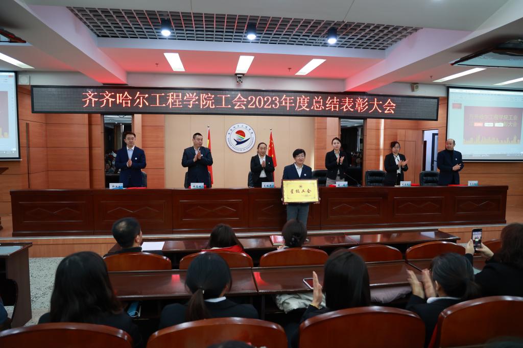 1月10日下午,学校工会2023年度总结表彰大会在学校图书馆601报告厅召开。学校党委书记郭伟东出席大会,学校工会副主席王丽萍、学校工会委员以及各基层工会主席、优秀工会干部和工会积极分子和会员代表等200余位教职工参加会议。会议由学校工会委员张磊主持。