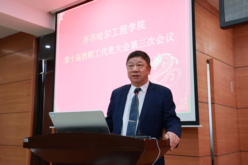 党委书记郭伟东致大会闭幕词。他指出,工作报告全面总结了学校2023年发展情况,提出了2024年的主要工作和奋斗目标,凸显了改革的主题、发展的思路。他强调,教职工代表们履职尽责,对学校一年来的工作以及下一步的改革和发展提出了许多宝贵的意见和建议,充分体现了广大教职工的主人翁精神和高度责任感。他指出,2024年是学校迎接审核评估关键之年。全体教职工要抢抓大有可为的发展机遇,共同谱写学校高质量发展新篇章,实现本科教育教学审核评估华丽通过的宏伟目标,在创建百年老校的征程中留下浓墨重彩的一笔。