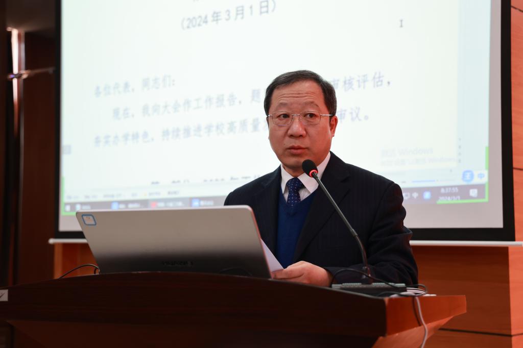 报告指出,2023年是全面贯彻落实党的二十大精神的开局之年、是学校迎接审核评估的冲刺之年、是凝练学校办学特色成果的攻坚之年,全校各项工作以审核评估为靶向,课程建设向纵深发展,办学特色建设成效显著。报告全面回顾了学校2023年所取得的成绩。