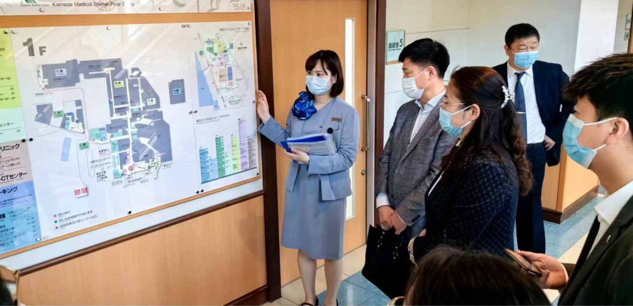 15日上午,考察团一行考察了龟田综合医疗中心。该医疗中心位于日本千叶县太平洋海边,拥有370年的历史,是一所大型综合性医疗中心,在早期癌症风险监测、心脑血管、糖尿病等十几种疾病治疗方面有丰富的经验。