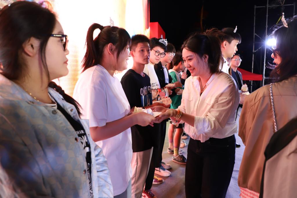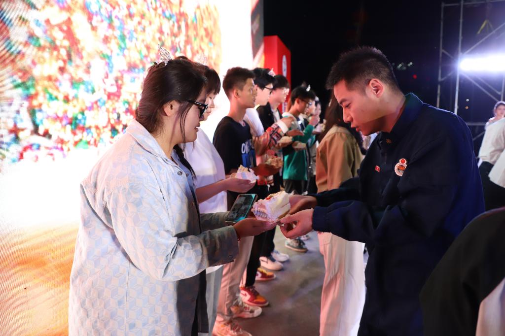 辅导员和生涯导师们上台为过生日的学生唱生日歌、送蛋糕、开香槟。