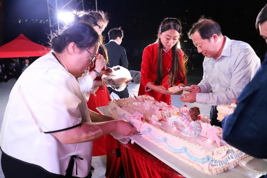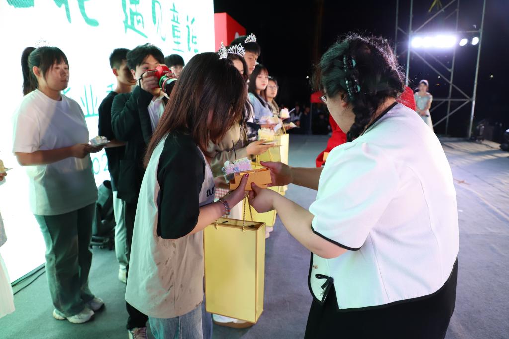 晚会还为在毕业当天生日的5名毕业生和12名在校生送上了特别的惊喜。曹然彬上台为过生日的学生切蛋糕并赠送生日礼物,让在场的学生感受到了家的温暖。