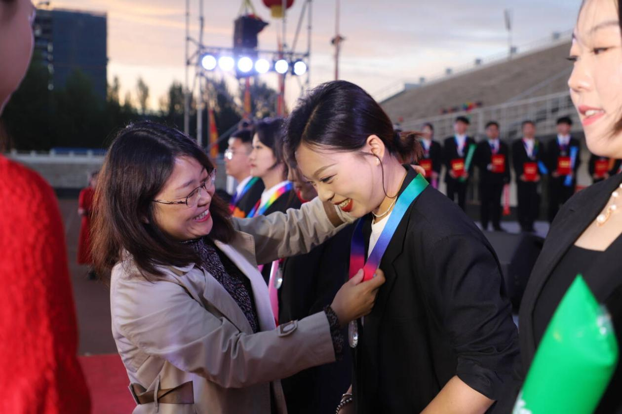 在全场热烈的掌声中,76位丁香奖章获得者走过会场红毯,登上领奖台,接受表彰。