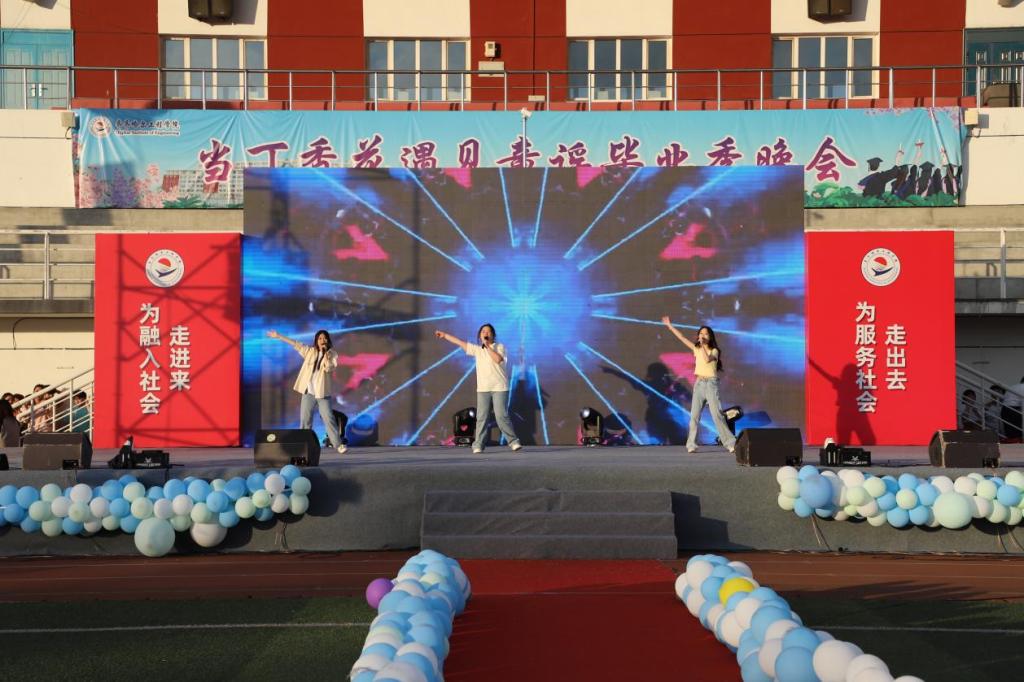 6月1日晚,学校在体育场举行2024“当丁香花遇见童谣”毕业晚会。学校创校校长、理事长曹勇安,院长曹然彬、常务副院长陈景鑫、副院长张静出席晚会,各系负责人、专业长、生涯导师、2024届毕业生代表参加。晚会采用线上线下相结合的方式,在校学生及家长、校友等逾万人次在线观看。