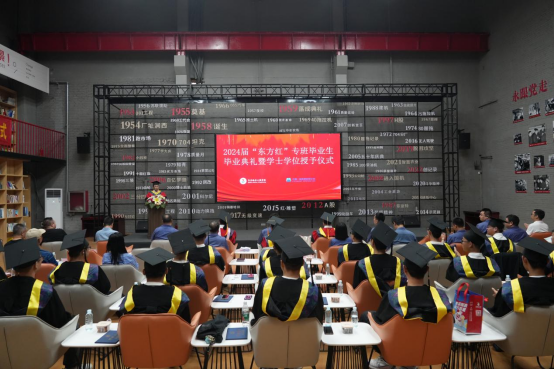 毕业典礼由敖林喆主持。敖林喆首先说明了“装备制造产业学院——东方红专班”成立的目的和意义,介绍了校企合作的成果以及“东方红”专班学生的成长历程和取得的成就。他表示,本次毕业典礼既是东方红首期专班的毕业典礼,也是学校首次在合作企业举办的毕业典礼,更是双方在探索校企合作、产教融合之路上的重要里程碑,意义非凡。