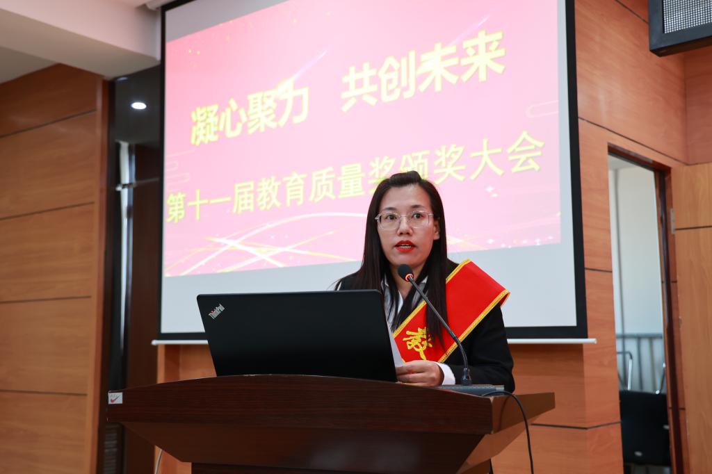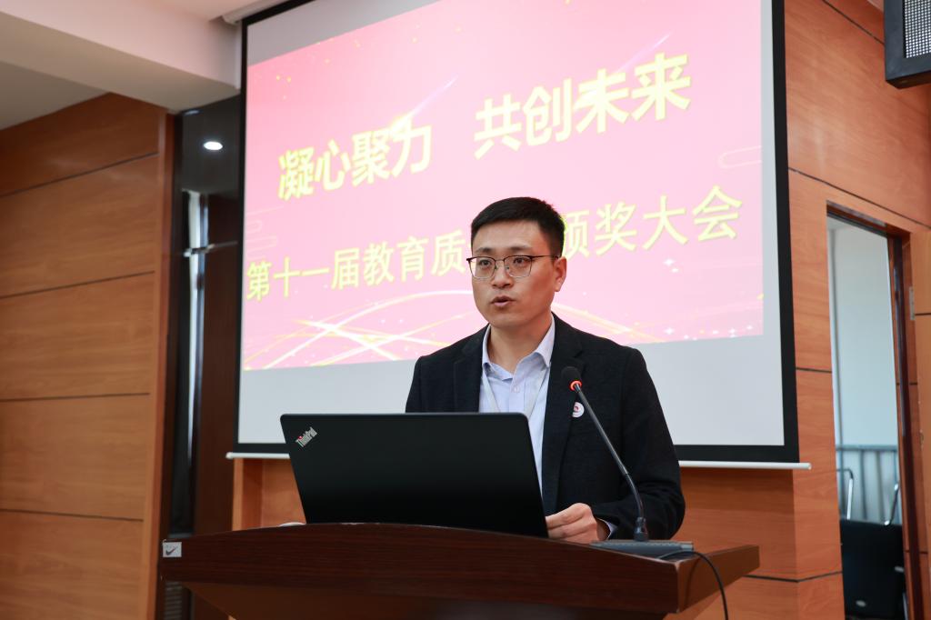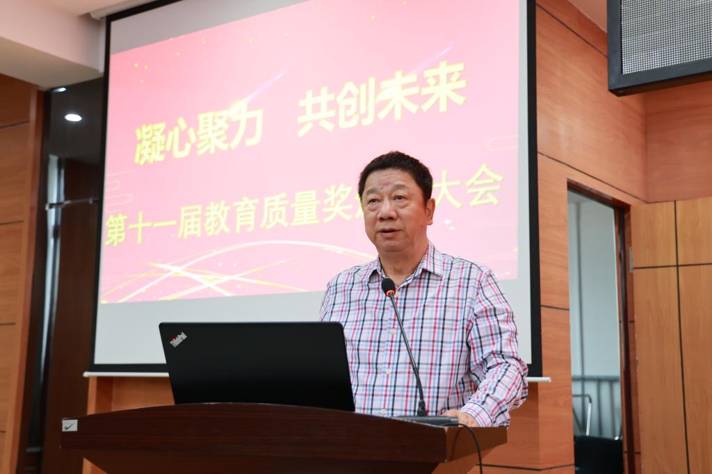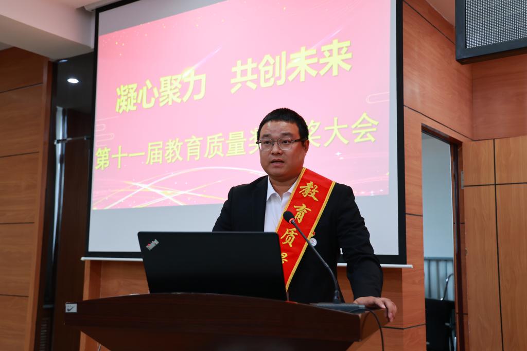 为大力弘扬教育家精神,加快建设教育强国,勇担新时代育人使命,进一步提升教育教学质量,9月30日下午,学校在图书馆601报告厅召开第十一届教育质量奖颁奖大会,理事长曹勇安、院长曹然彬、党委书记郭伟东,党委副书记、常务副院长陈景鑫,副院长白雪、副院长张静出席会议,全面质量管理办公室副主任张洪岩主持,全体教职工线上、线下参会。