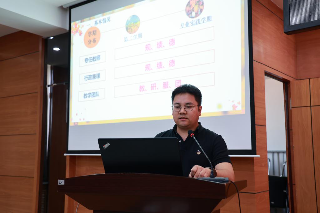 教务处副处长李文禹从基本情况、第二学期、专业实践学期、愿景四个方面作第十一届教学质量奖汇报。提出以规范动作不走样,自选动作可创新为导向,坚持“以赛促学、以赛促教、教学相长、提高质量”十六字方针;强化课程思政“四个一”工程,进一步推进思政“走心入脑”;突出产教一体,强化实践教学,推动专业与社会实践综合改革。