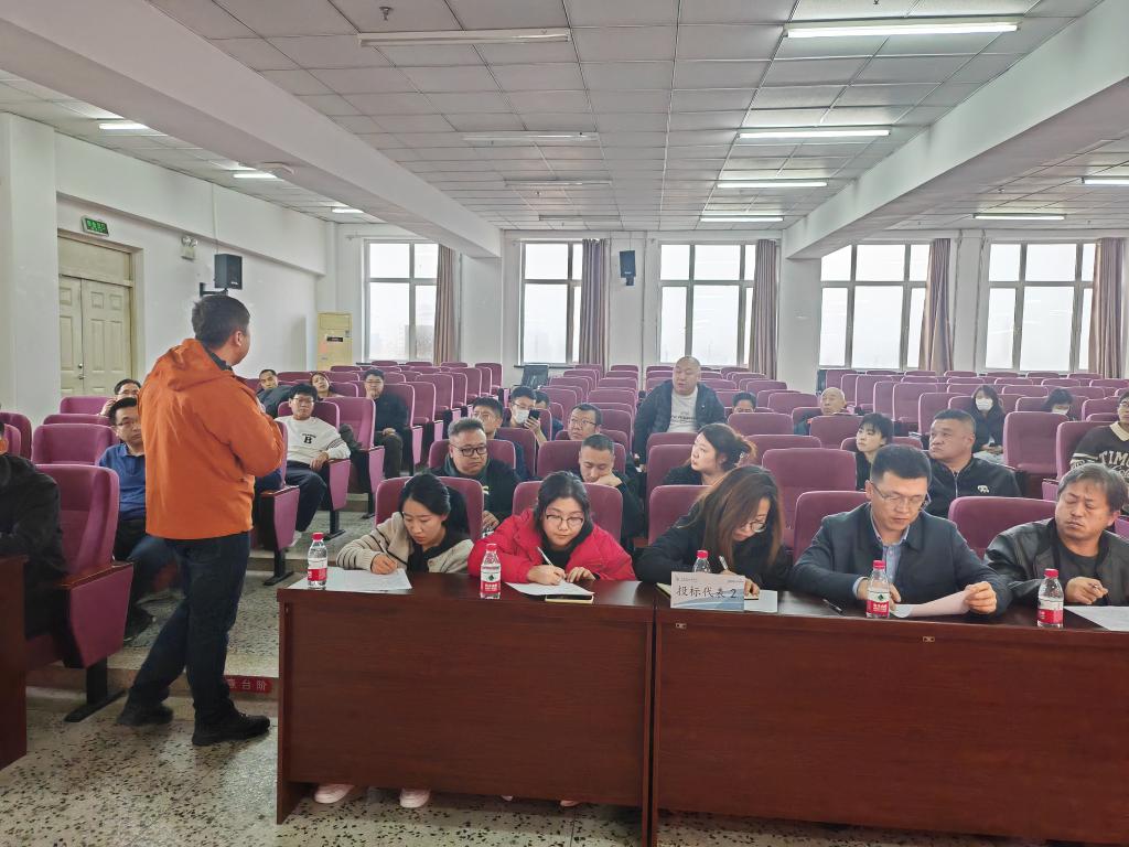 院长曹然彬、基建办主任崔晓东、招标办主任杨鹏与设计单位代表,就项目设计相关内容进行交流与答疑。