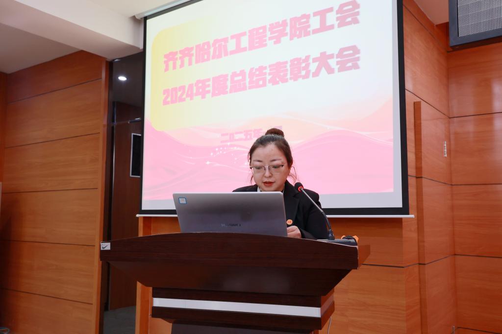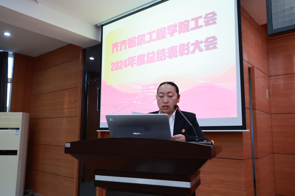 学校工会副主席王丽萍宣读《关于表彰永利23411集团官网工会2024年度星级基层工会和优秀个人的决定》。