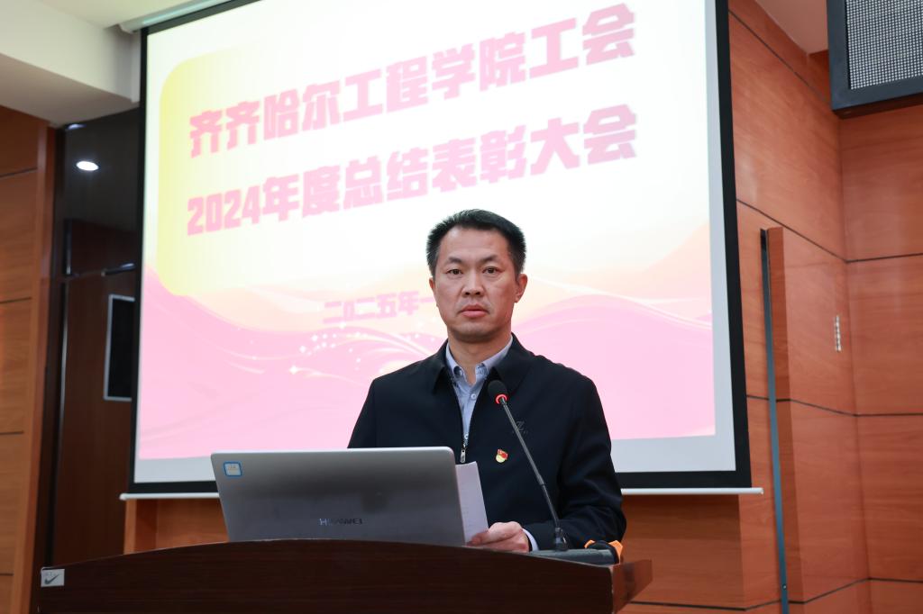 郭伟东在讲话中指出,2024年,学校工会以习近平新时代中国特色社会主义思想为指导,在学校党委的领导下,紧紧围绕学校中心工作,切实履行了工会的“四项”职能。他要求,要把增强“三性”作为工会的根本标尺和长期任务。一是以政治性为灵魂,旗帜鲜明坚持党对工会工作的领导,始终保持正确政治方向;二是以先进性为重点,充分激发干部积极性、主动性和创造性,创造新业绩,建功新时代;三是以群众性为根本,始终坚持以职工为中心的工作导向,把工会建设得坚强有力。他希望,全体工会干部和广大教职工在新的一年里,继续保持昂扬向上的精神状态,将每一份努力汇聚成推动学校高质量发展的强大动力,向着更加灿烂辉煌的明天奋勇疾驰,奋力书写荣耀篇章。