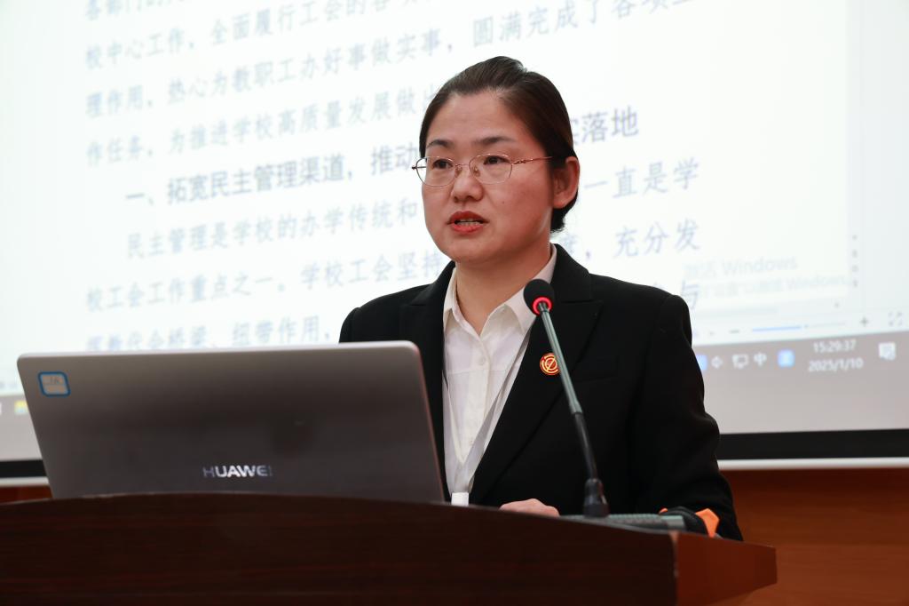 获得星级工会单位的机关基层工会副主席隽永刚代表获奖集体和个人发言。他表示,将一如既往发挥工会的桥梁和纽带作用,当好教职工“娘家人”,建好教职工之家,服务职工有温度,工会工作添热度。