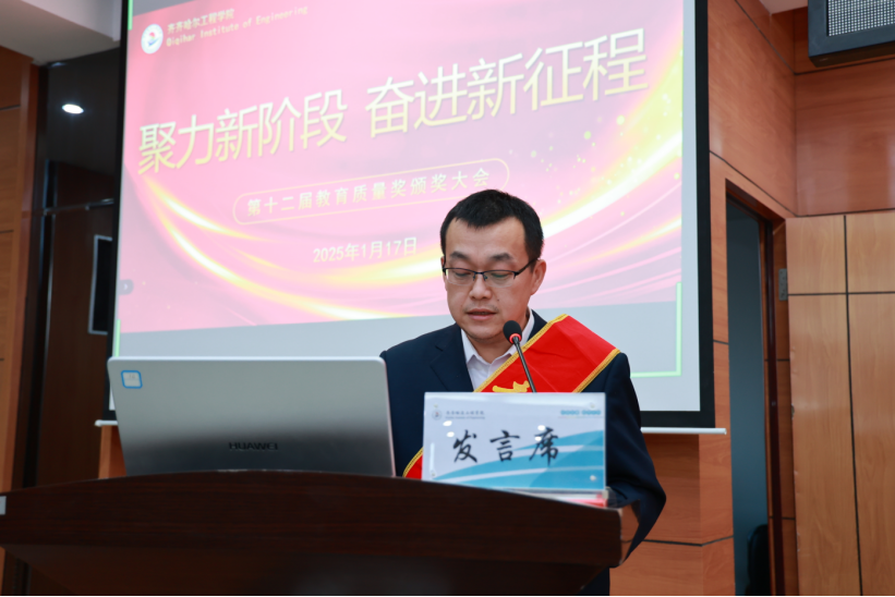 人事处处长张莹作2024年干部业绩奖奖励情况汇报。表示,本届教育质量奖大会首次颁发干部业绩奖,希望能激活干部干事创业“动力源”,打造担当作为“新引擎”,为学校各项事业高质量发展贡献力量。