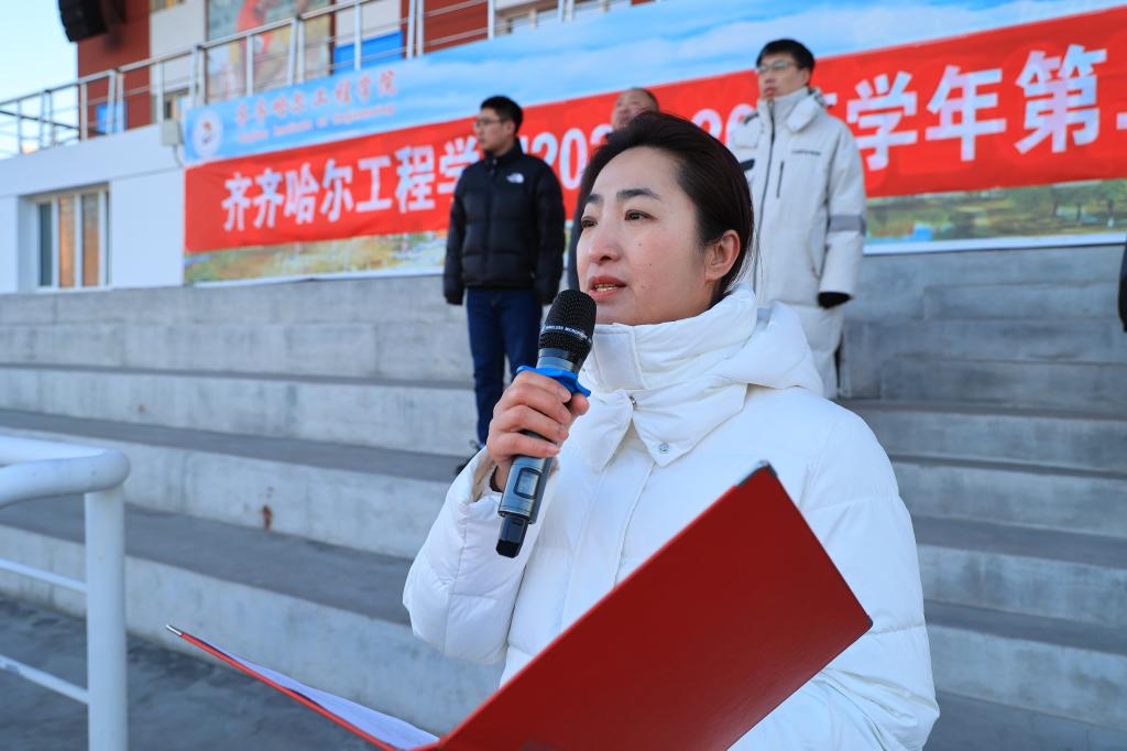 陈景鑫作总结讲话,她对全校师生提出新学期的期望和要求,一是德行修炼,筑牢价值根基,将个人理想与学校紧密相连,助推学校高质量发展;二是智慧进阶,点燃求知热情,驾驭DeepSeek等AI知识深海,培养创新思维,主动融入时代发展潮流;三是习惯淬炼,炼成更加健全人格,努力成为品德高尚的人,以良好的精神面貌迎接新学期,以优异成绩迎接学校本科教育教学评估。