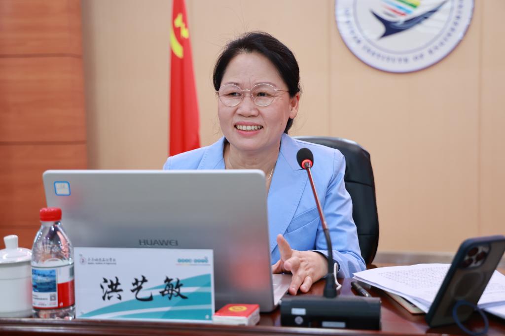 会上,张静简要介绍了洪艺敏的履职经历。随后,各部门负责人结合各自分管工作,围绕专业集群建设、科研工作、质量保障体系建设、新专业申报等方面向洪艺敏请教相关问题。洪艺敏针对每个问题进行了专业细致的解答,分享了她在高等教育领域的理论研究和实践经验。
