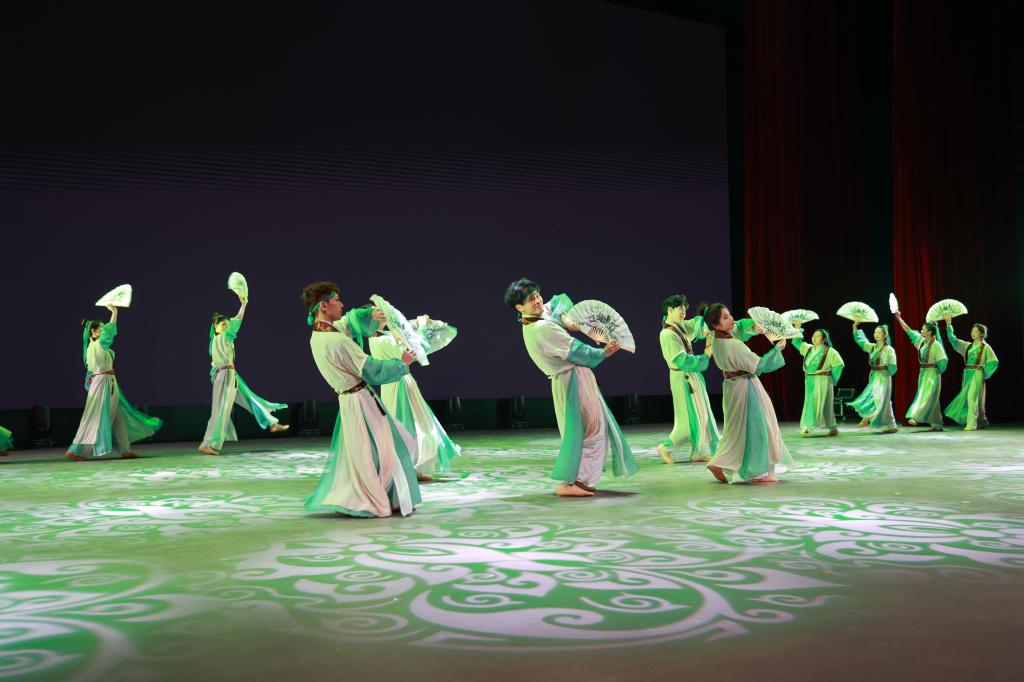 大会在大学生艺术团表演的舞蹈《纸扇书生》中拉开序幕。