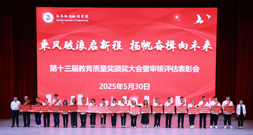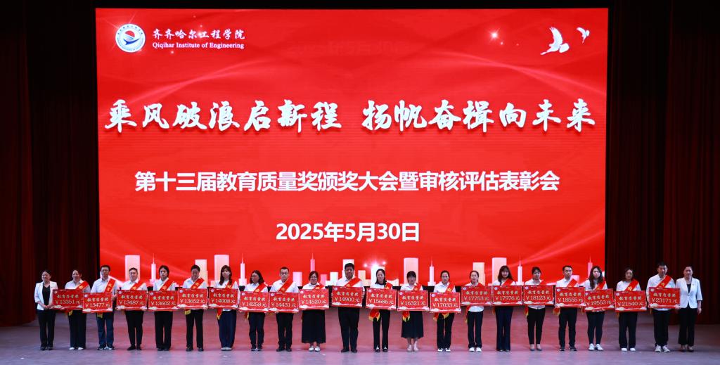 5月30日,学校在产教融合基地人民会堂举行第十三届教育质量奖颁奖大会,创校校长、理事长曹勇安,校长、党委副书记曹然彬,党委副书记、副校长陈景鑫,副校长白雪、副校长张静、副校长崔晓东、总会计师姜岩出席会议。会议由全面质量管理办公室主任孟艳辉主持,全体教职工参加。