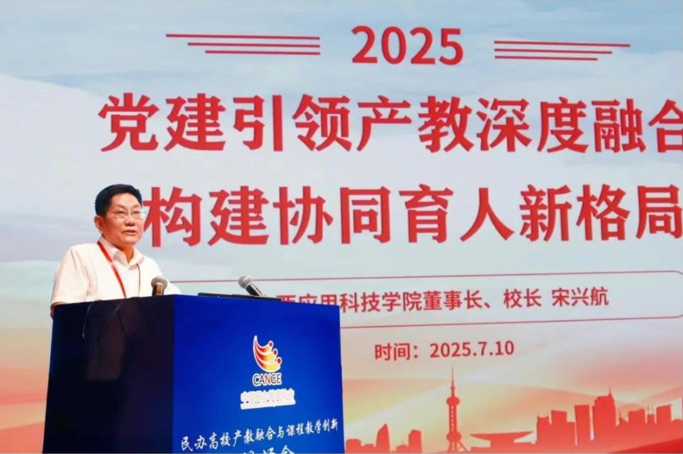 山西应用科技学院董事长、校长宋兴航作“党建引领产教深度融合,构建协同育人新格局”报告。他对国家领导亲切关怀,坚定民办高校发展信心;创新“三创教育”模式,推进产教融合发展;构建协同育人格局,着力培养高素质应用型人才三个方面进行分享,表示学院在党建引领下,将为国家培养更多优秀的高素质应用型人才,为经济社会发展贡献更大力量。
