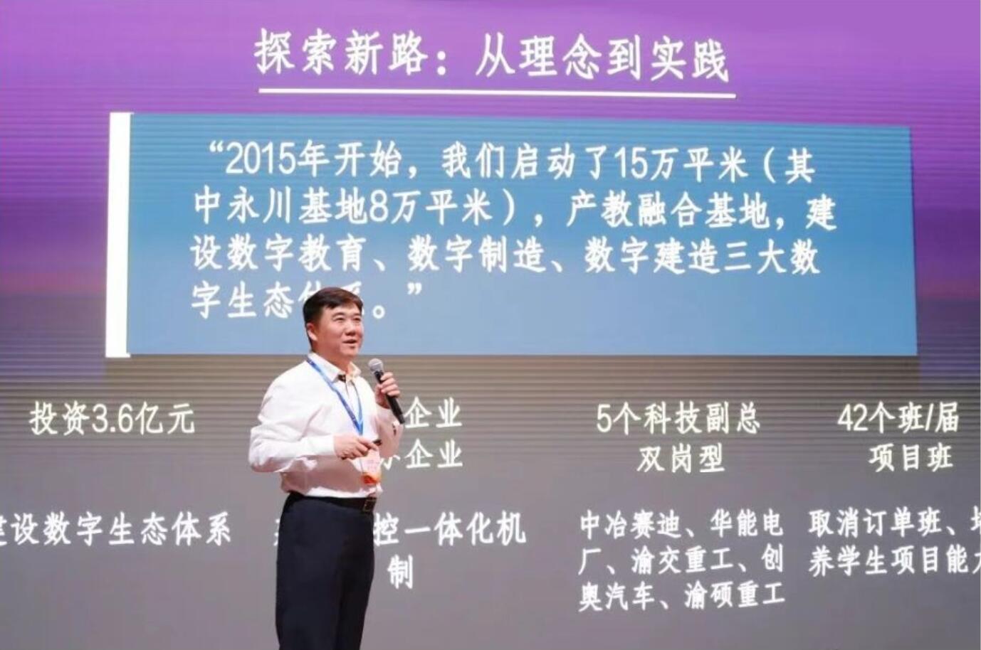 重庆交通职业学院董事长张文礼作“数字教育、数字制造、数字建造三大生态体系推动产教融合走深走实”报告,他从危机已来:共同危机来临(Why)、破局之路:协同四方需求(How)、未来已来:三大生态体系 (What)三个方面展开详细的论述,表示,要紧跟行业,持续优化三大数字生态体系,跟跑第四次工业革命,力争与行业并跑,为国家培养“未来数字技能人才”。