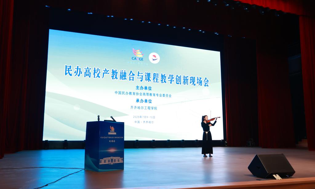 民办高校产教融合与课程教学创新现场会开幕式在小提琴悠扬的旋律中拉开帷幕。