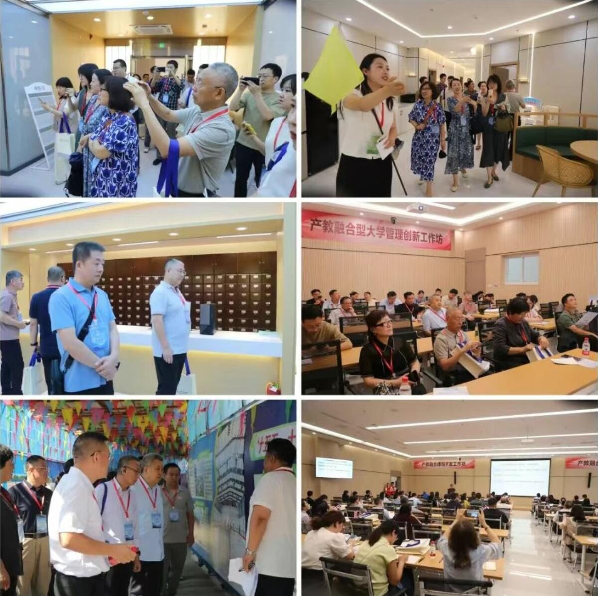 在观摩产教融合工作坊环节,学校重点展示了产教融合课程开发工作坊、产教融合校外课堂建设工作坊、产教融合型大学管理创新工作坊三个工作坊。与会人员通过沉浸式体验,全面了解学校在产教融合、应用型人才培养、课程建设等方面取得的成效。