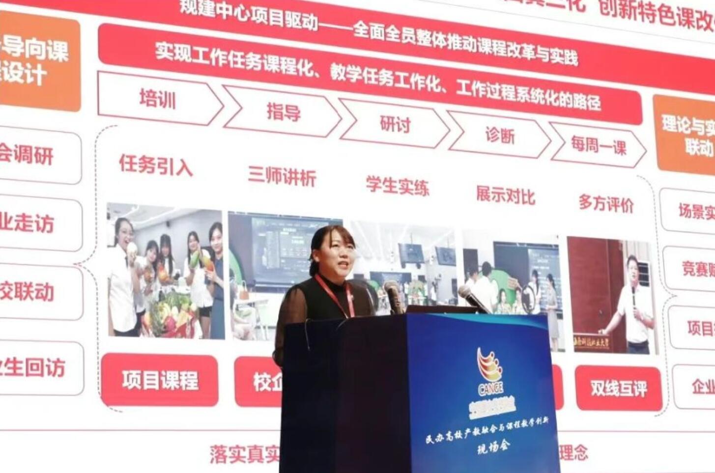 海南科技职业大学副校长潘灵以“民办职业本科院校全员整体推进课改实践”为题作报告,她从坚持职业属性,构建产教融合生态;打造四真三化,创新特色课改体系;强化育人理念,构建多元支撑平台;深化校企协同,赋能实践能力培养;展望职业目标;谱写产教融合新篇五方面进行分享,她表示,产教融合是职业本科教育的必由之路,课程创新是人才培养质量的核心引擎。海南科技职业大学愿与全国民办高校携手,以自贸港建设为契机,以产业需求为导向,持续深化“校企协同、课岗融合”育人模式,共同书写职业教育高质量发展的新篇章。