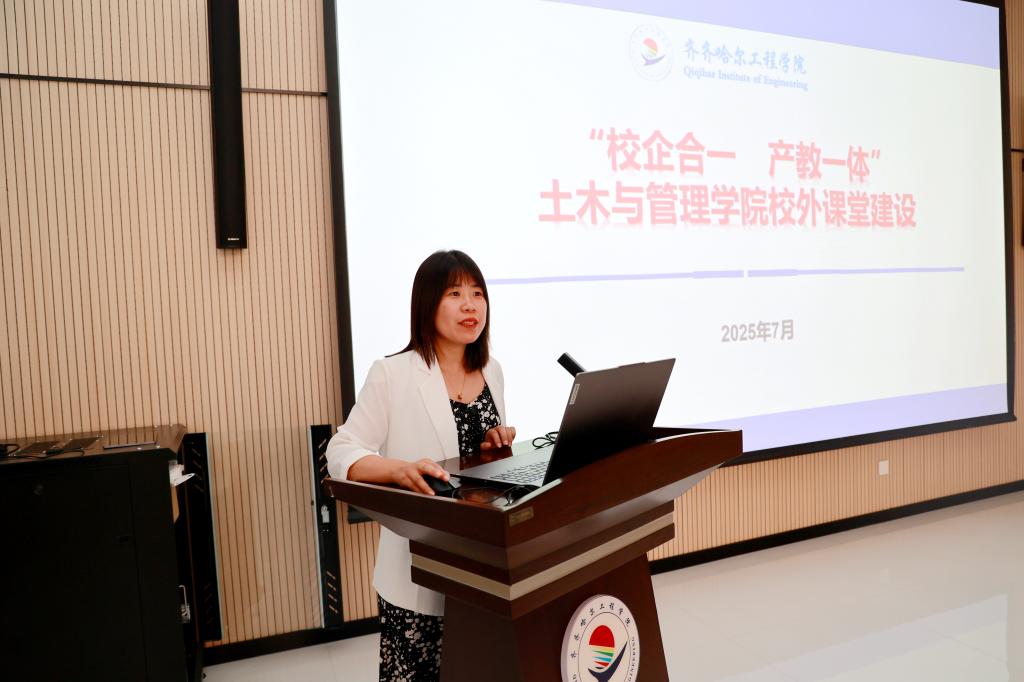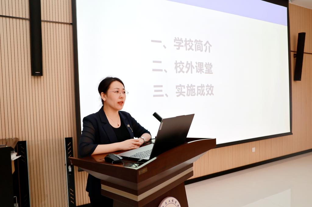 会上,教务处副处长郝丽娜从学校简介、校外课堂、实施成效三方面介绍产教融合课程实践;土木与管理学院院长徐明以从校外课堂设计、校外课堂实施、校外课堂成效三个方面介绍了土木与管理学院校外课堂建设情况。