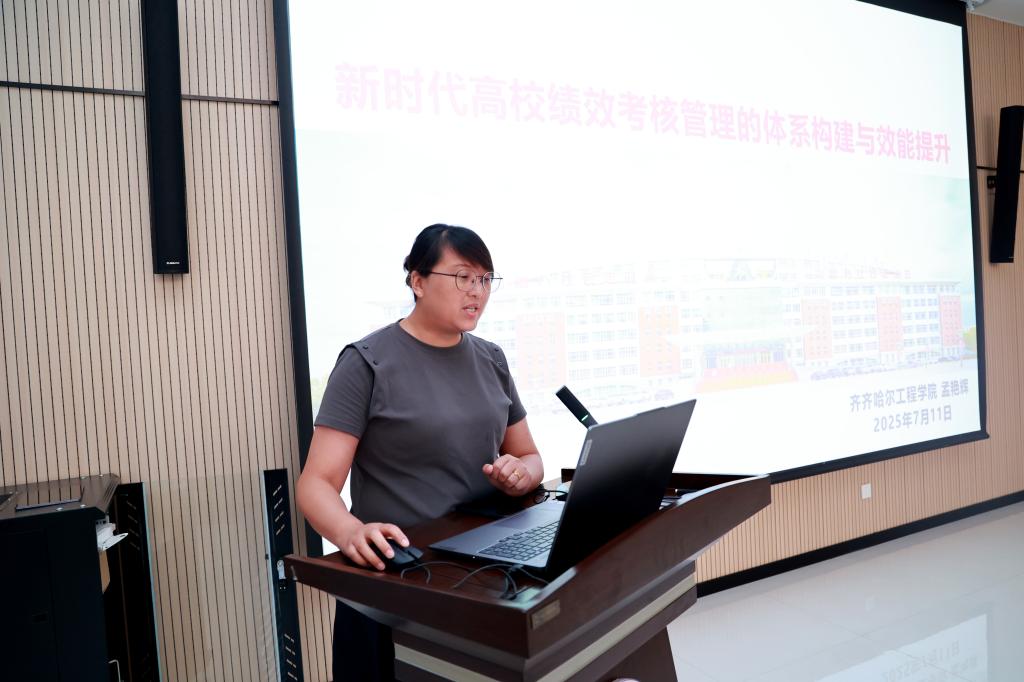 全面质量管理办公室主任孟艳辉从部门定位与职责、背景与意义、框架与路径等方面介绍了新时代高校绩效考核管理的体系构建与效能提升。