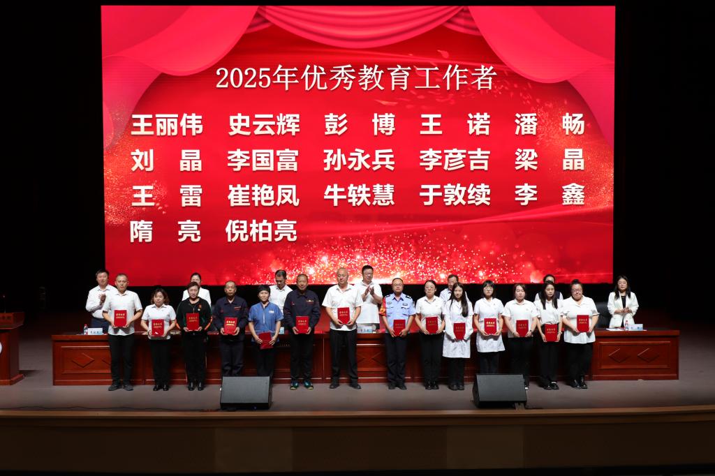 金秋九月,硕果飘香。在第41个教师节到来之际,为大力弘扬教育家精神,展现新时代教师风采,激励全体教师向先进典型看齐,9月10日下午,学校在人民会堂召开庆祝2025年教师节暨表彰奖励大会。学校领导出席会议,全体教职工参会。