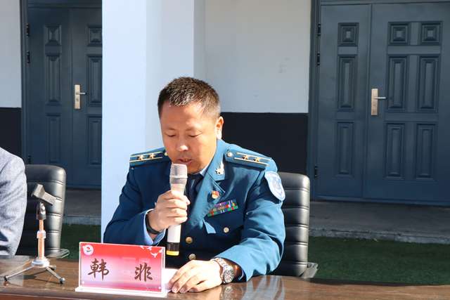 空军93320部队参谋长韩非代表部队全体参训教官,向学院师生对此次军训工作的大力支持表示衷心感谢,向圆满完成此次军训任务的全体新生表示热烈祝贺!