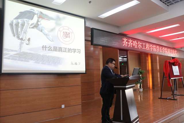 曹勇安理事长在仪式上作题为《什么是课程》的专题报告,从人工智能时代背景下所面临的“职业替代”切入,强调了“道德、情感、哲学、审美、批判性思维”的重要性。为学长们介绍开发课程的基本程序,指出要在“四真”的基础上改革教学流程、内容、方法,进而激发学生学习兴趣、探究兴趣和职业兴趣。提出要运用工作过程系统化的方法,解决“校内课堂”和“校外课堂”,两个独立课堂的理论与实践相融合的问题。