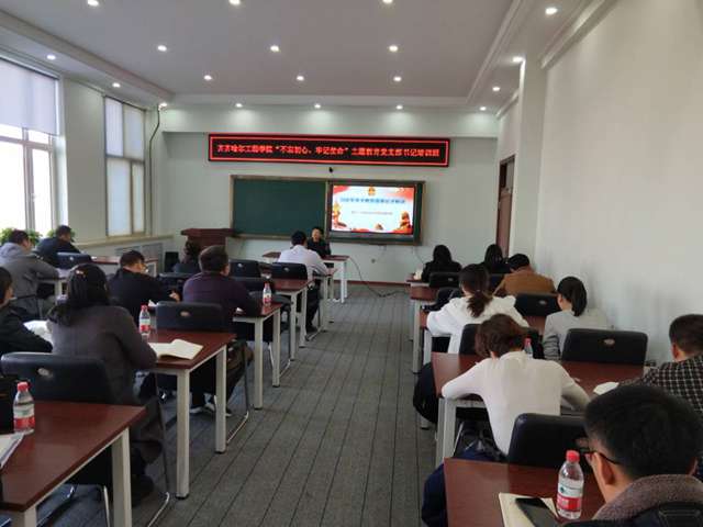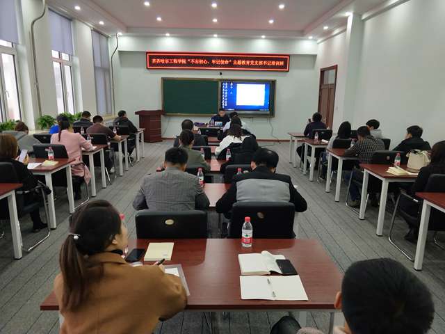 学院思政教学部负责人魏军为基层党支部书记做《习近平关于“不忘初心、牢记使命”重要论述选编》导读。就《摘编》的主要内容,从认识论的角度,谈为什么学;从实践论的角度,谈学习什么;从方法论的角度,谈怎么学习。强调促进学习往深里走,要做到学深悟透;促进学习往心里走,做到融会贯通;促进学习往实里走,做到身体力行;促进学习往长远走,做到持之以恒。
