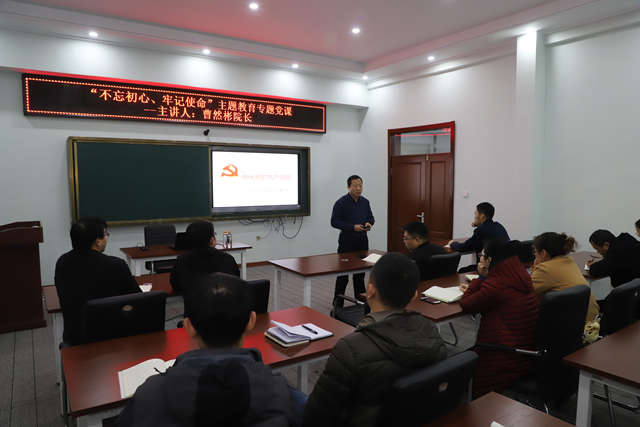 根据学院党委“不忘初心、牢记使命”主题教育工作安排,10月30日下午,学院党委委员、院长曹然彬以《做优秀的共产党员》为题,为机关第三党支部全体党员和信息工程系全体党员、干部及专业长上专题党课。