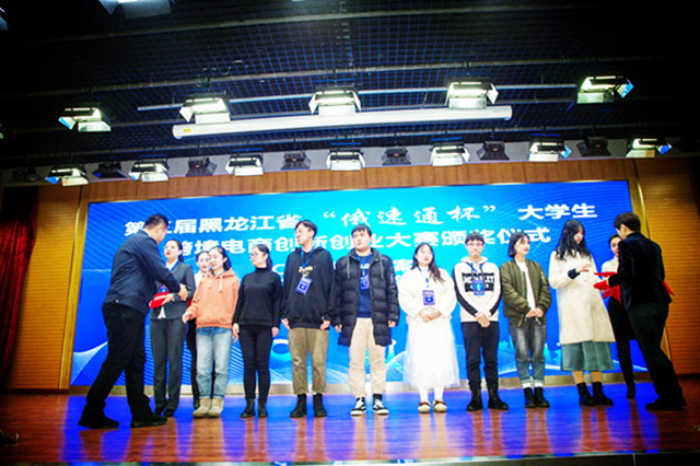 12月1日下午,在第三届黑龙江省“俄速通杯”大学生跨境电商创新创业大赛颁奖仪式上,学校电商171班学生晋长鑫、赵一丹、赵新彤组成的团队获颁最佳文案奖。本届大赛共颁发3个最佳文案奖。