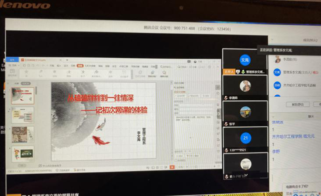 李文禹老师在线上教学的软硬件准备上下足了功夫,2台电脑1台手写板,成为他线上教学的标配。基于《经济学原理》课程,李文禹老师为大家做了网络授课的展示,就如何针对学科特点,挖掘平台优势,打造出适合学生的混合式课堂做出详细的介绍与演示。他认为课前的充分准备是前提,并要及时了解学生心理动态,以学生为中心进行教学设计与实施。