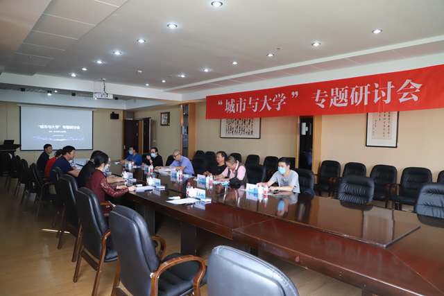 在图书馆603会议室,理事长曹勇安、副院长张振笋、校党委原副书记许长艳、宣传部副部长郭伟伟等校方代表,与来宾一起畅谈“城市与大学”的话题。