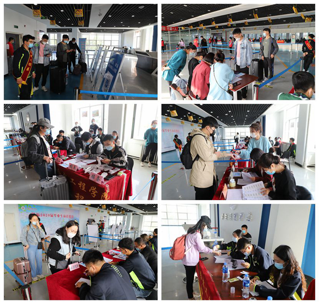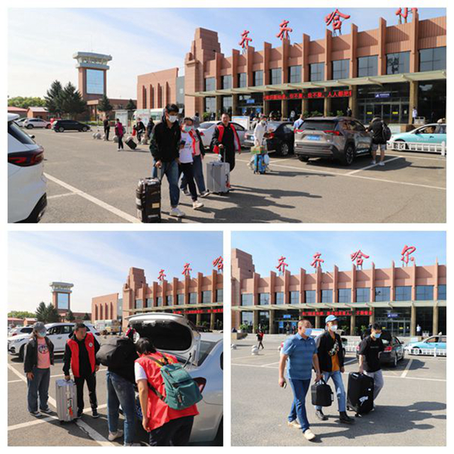 学校根据学生们提供的到齐市车次时间,统筹安排了4台大客车,由学生工作处3位老师带领4名团学干部志愿者,分别到齐齐哈尔火车站及其南站迎接返校学生,送上学校的问候与关怀,闭环接送返校学生回到学校。