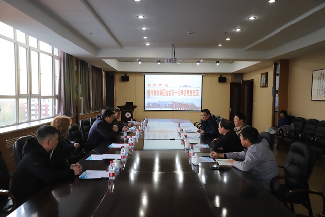 商会会长、黑龙江聚力电气公司董事长章国龙畅谈了来校的感受,他首先对学校取得的成就特别是对曹勇安理事长的创业精神表达敬意。同时介绍了齐齐哈尔市温州商会发展现状,表达了校企合作,共建事业发展平台的愿望。