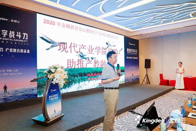 2020金蝶云全球用户大会在海南三亚举行,会议吸引了各地1500多家大中小企业和多所高校行业领军人物、学术专家参加。11月5日下午,理事长曹勇安教授应邀在“数字人才新势力 产教融合创未来”——2020年金蝶教育论坛暨现代产业学院建设研讨会上做《现代产业学院建设助推产教融合》主题演讲。